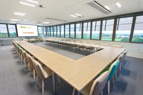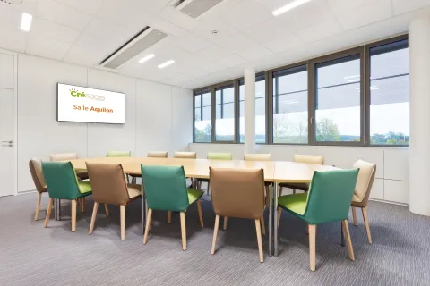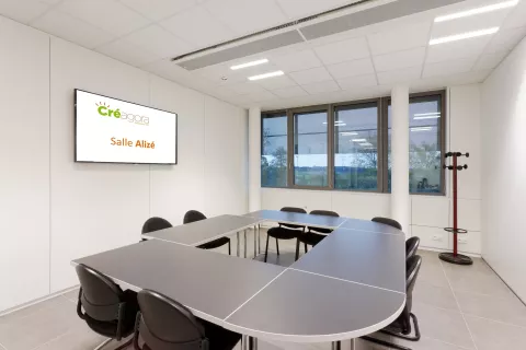 Que ce soit pour organiser une réunion d’équipe, rencontrer des collaborateurs mobiles (délégués, techniciens…) ou accueillir des clients, chez Créagora nous vous proposons plusieurs salles de réunion de tailles différentes. Confortables et lumineuses, elles sont accessibles à la demi-journée, journée complète, soirée ou encore le weekend. Toutes nos salles de réunion sont disposées en U mais peuvent être aménagées différemment selon vos besoins (banc d’école, auditoire, en O…). De plus, l’espace Créagora est facilement accessible en transports en commun ou en voiture et dispose d’un vaste parking gratuit.